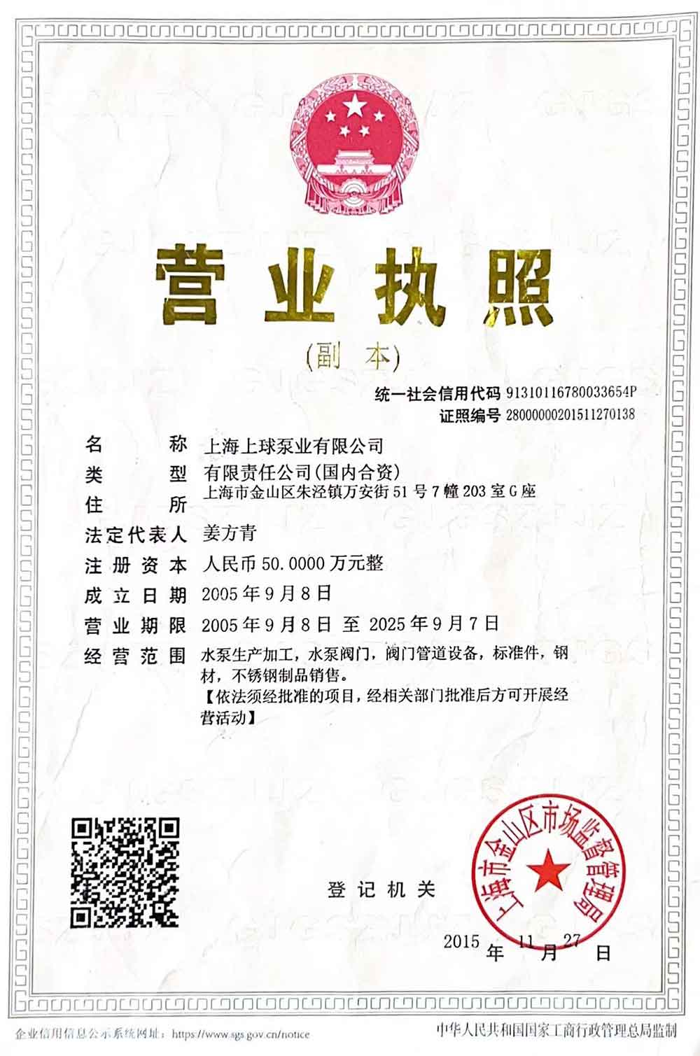 上海上球泵業有限公司  地址:上海市寶山區滬太路1935號